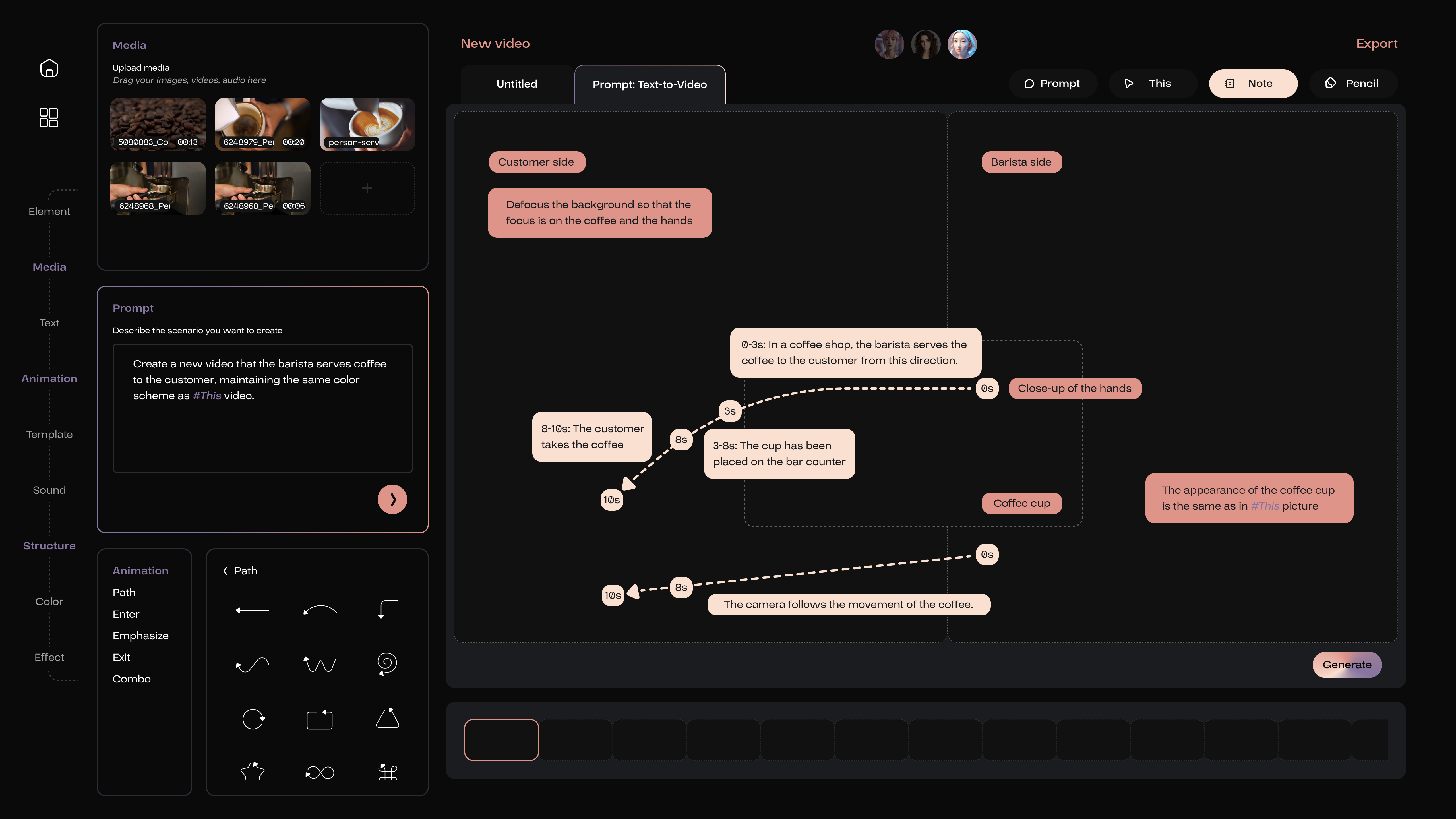 By activating the structure section, Pencil allows for delineating different objects’ positions on the video interface, which can be further complemented by Note to describe the objects in those specified locations.