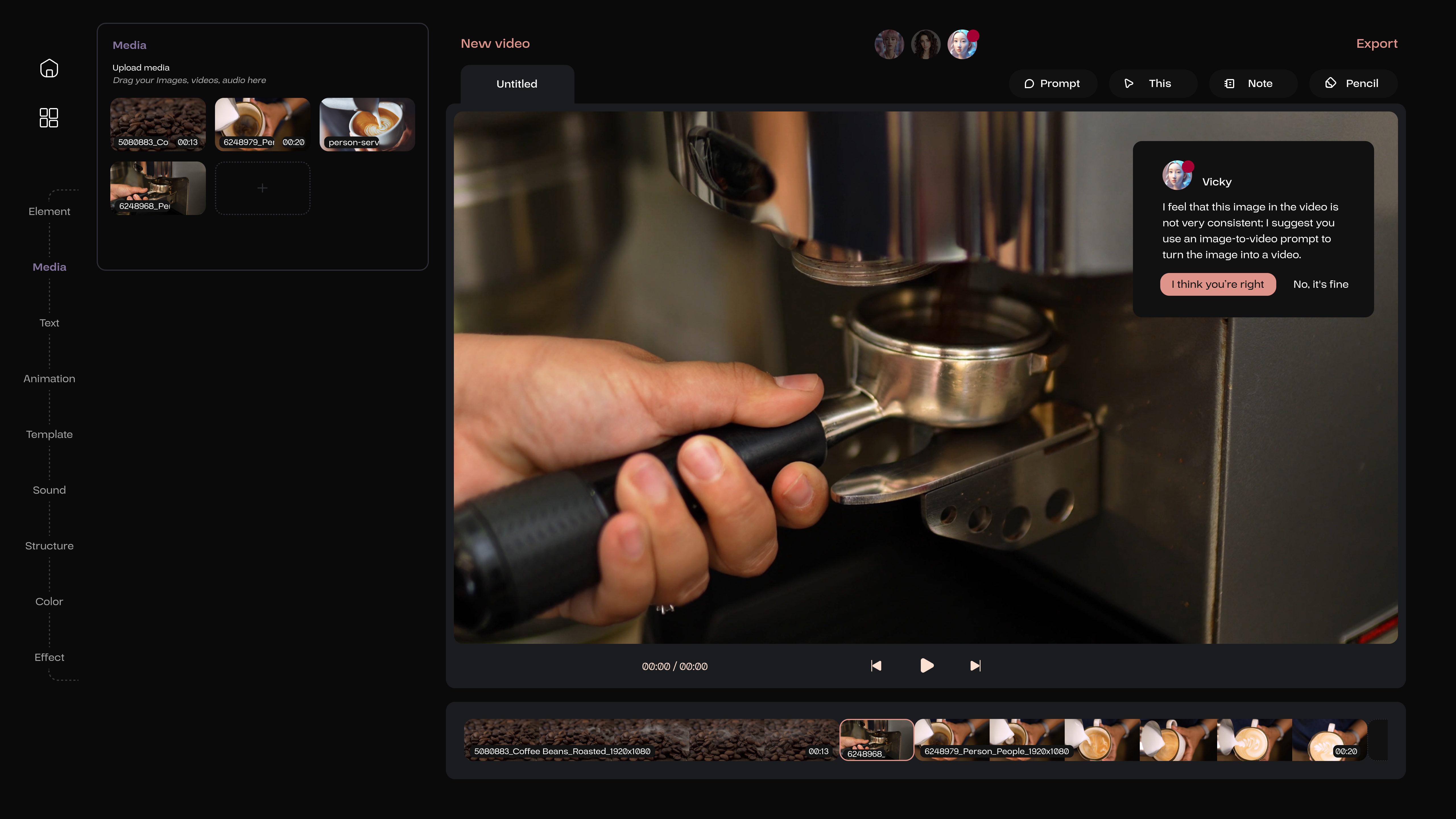 AI members will uncover areas for improvement continuously according to the user’s input, refining the video to enhance its comprehensiveness and perfection.