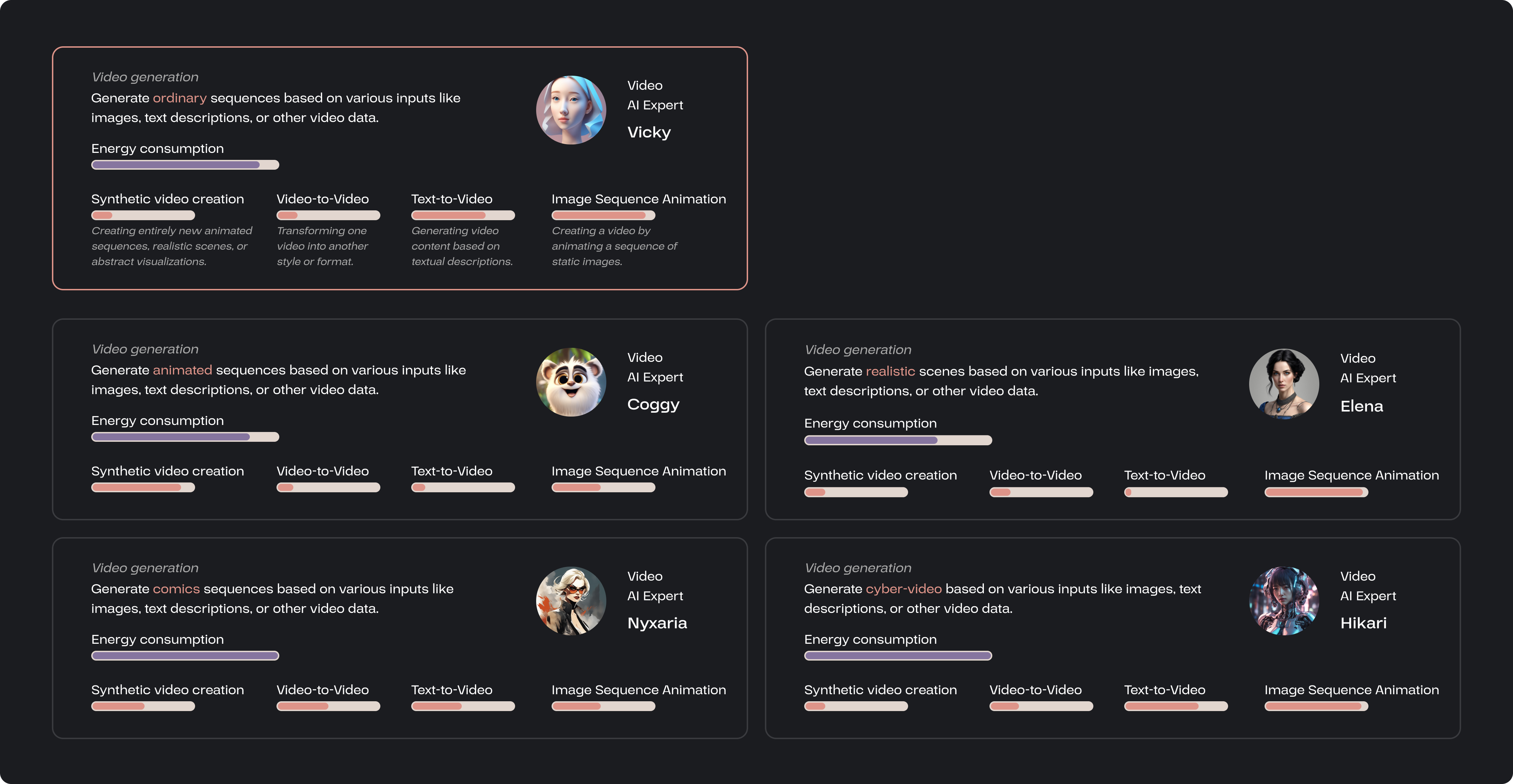 Based on these keywords, the system analyzes which functions the user needs from the AI. Based on these functions, the system will recommend suitable AI members to the user.