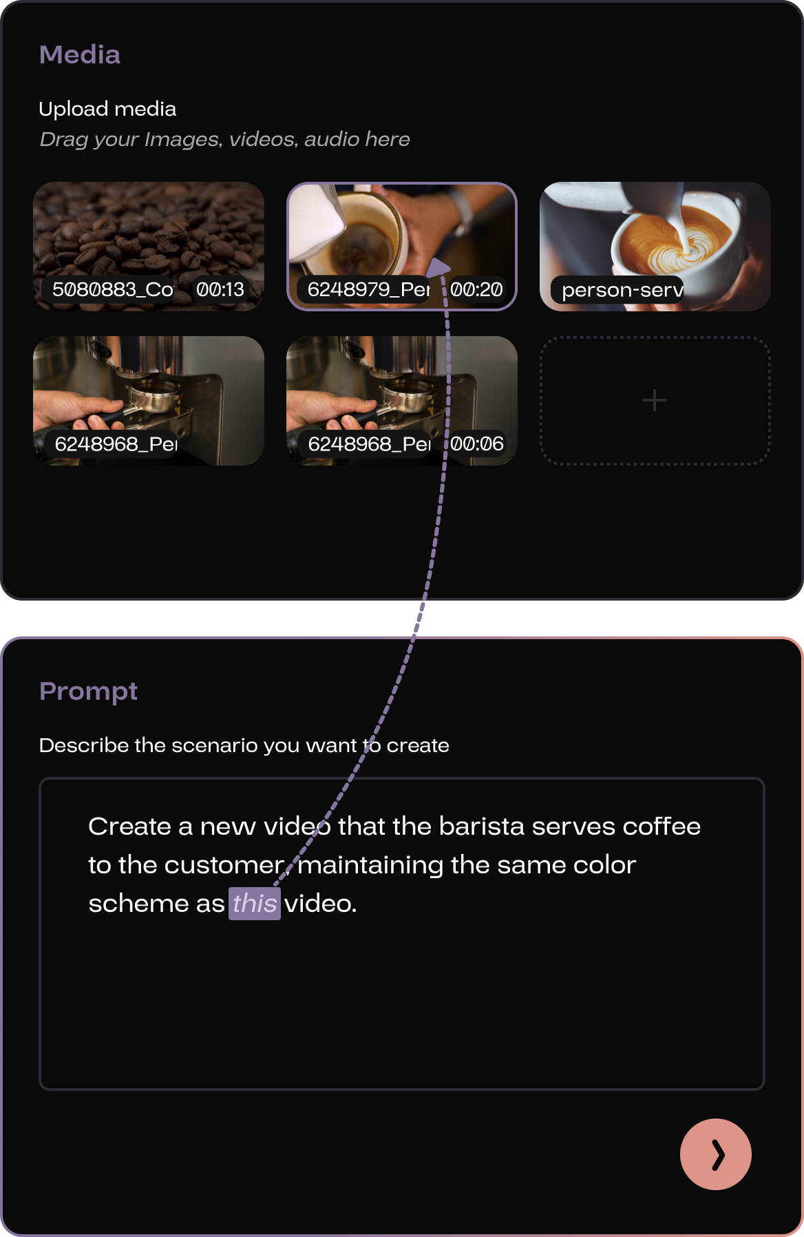 When there is a need to include a material in the prompt, the user can use This feature to link the reference in the prompt text with the visual preview of the material.